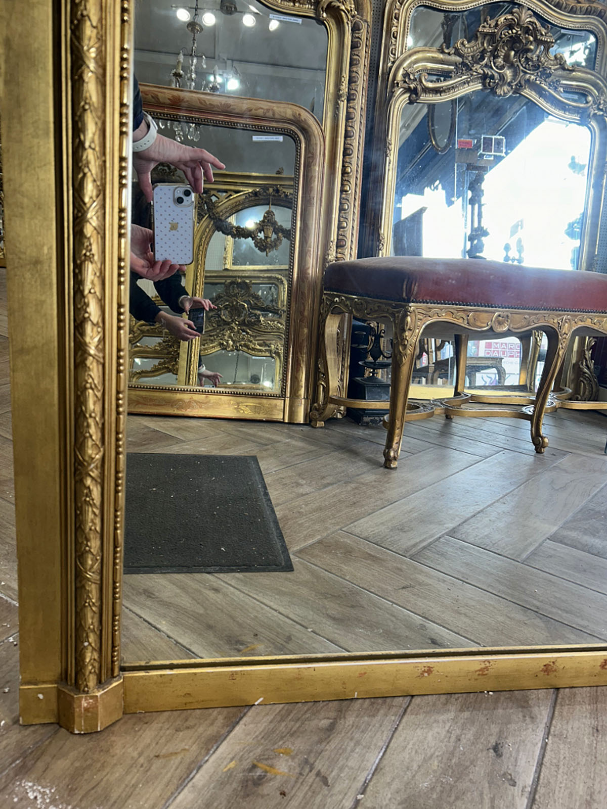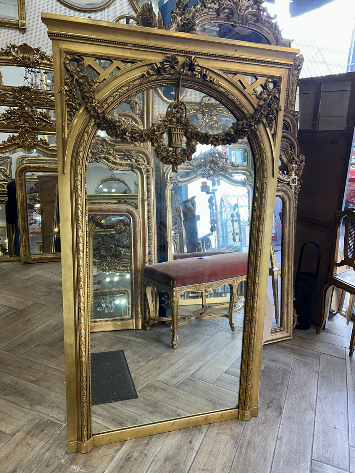 Glace avec tain à l’argent ancien, conservant tout le caractère de son époque.