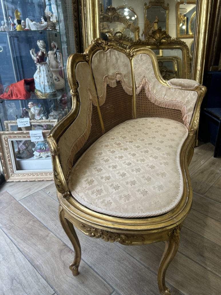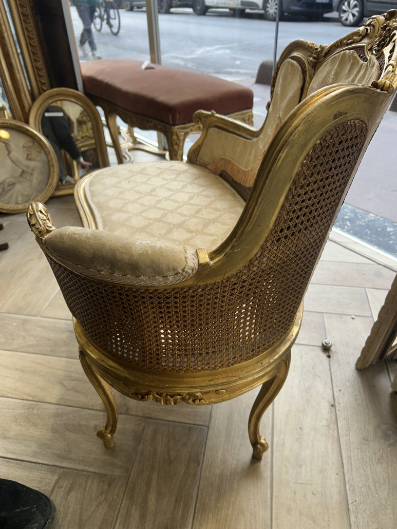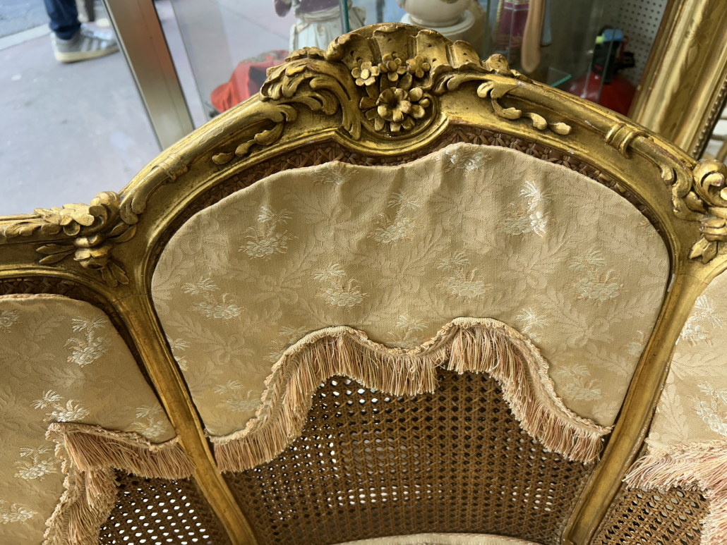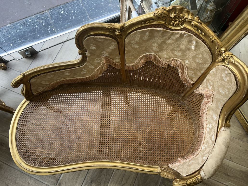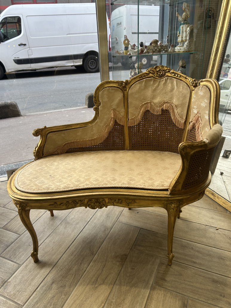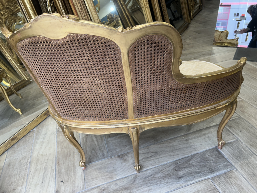 Banquette en Bois doré à la feuille d’or, double cannage en bon état d’époque Napoléon III de style Louis XV