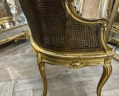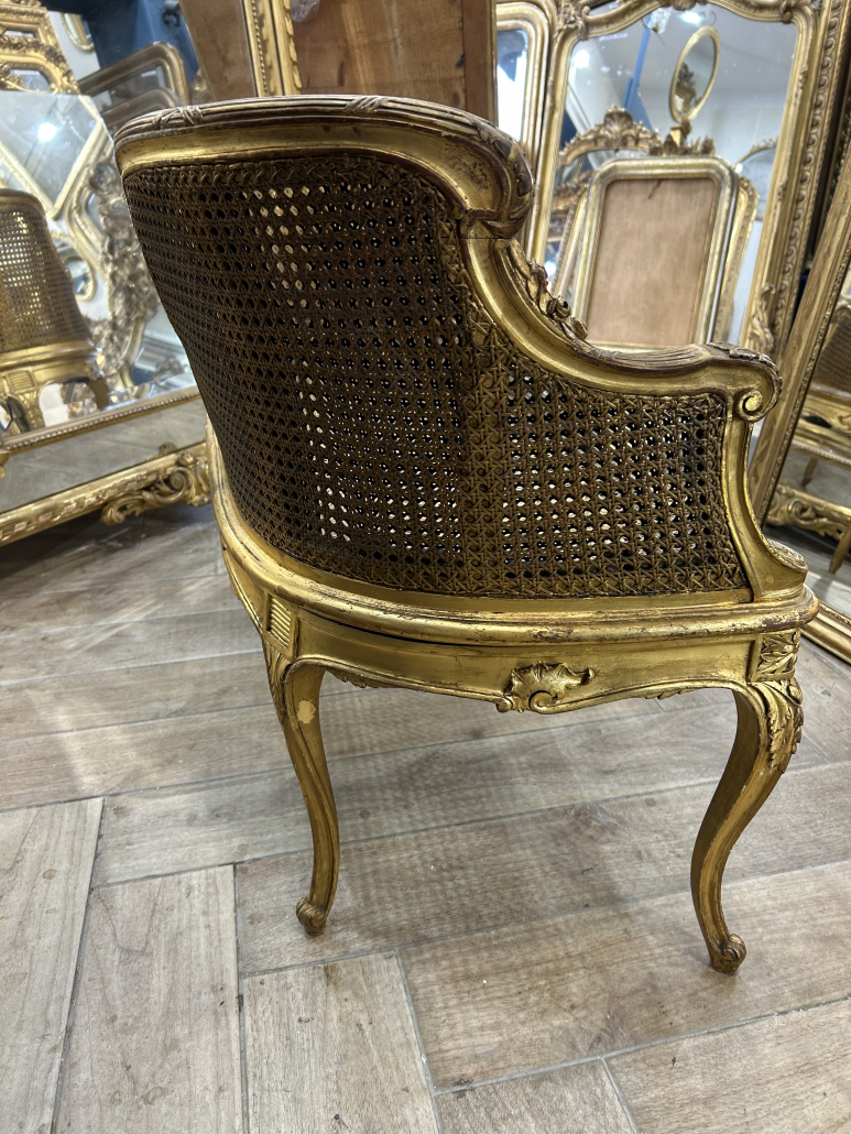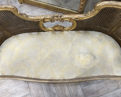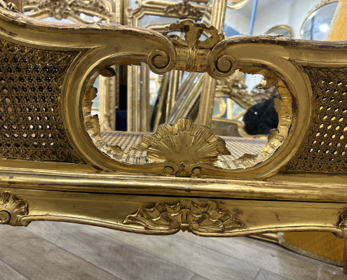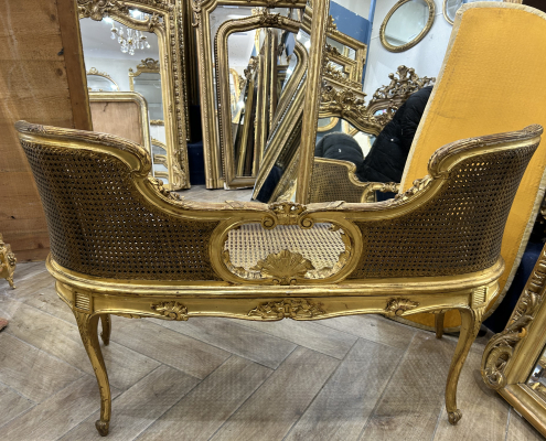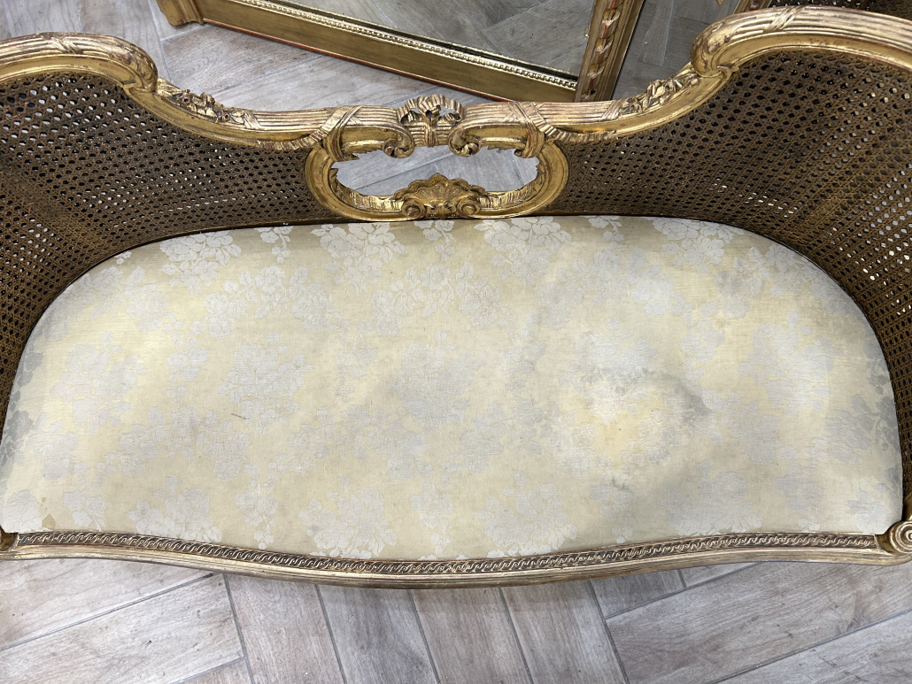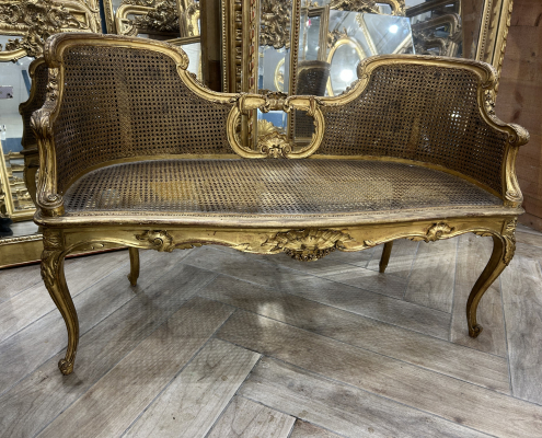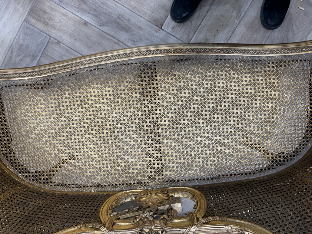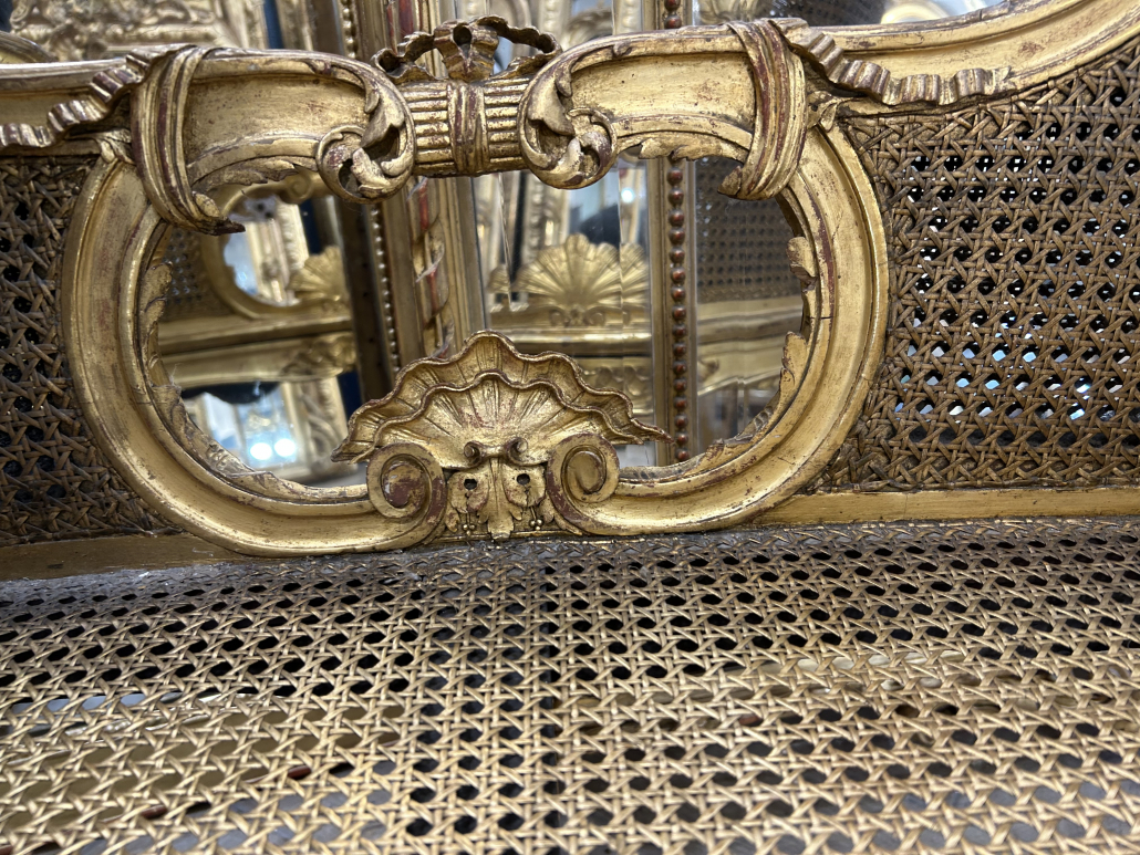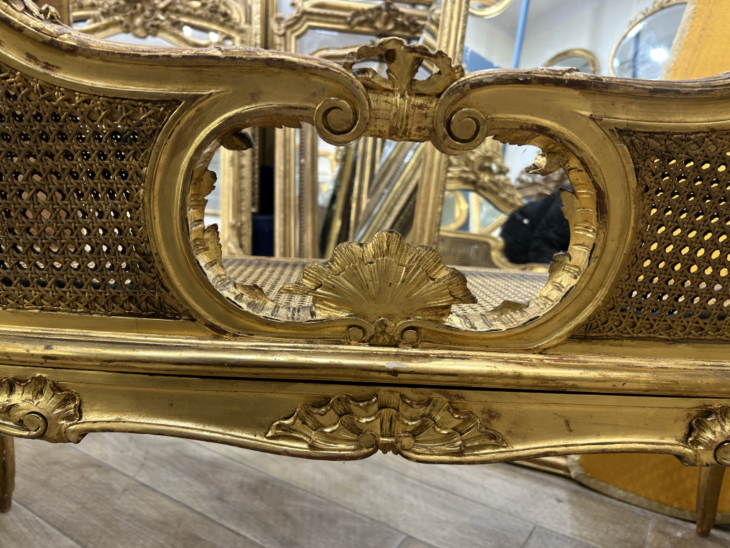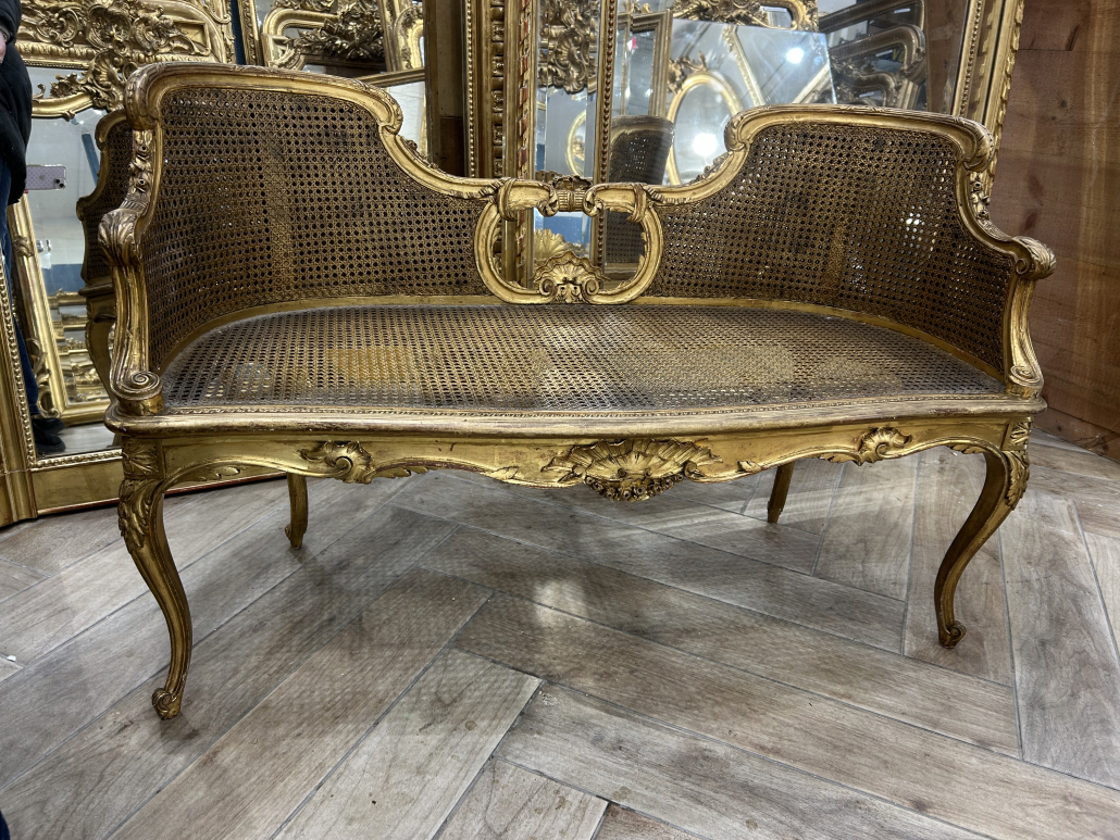 Trés jolie Banquette en Bois doré à la feuille d’or, double cannage en bon état d’époque Napoléon III de style Louis XV