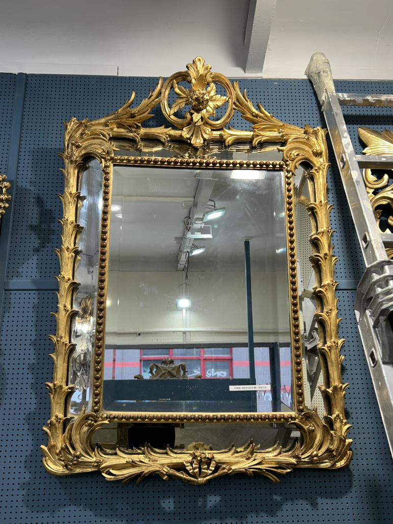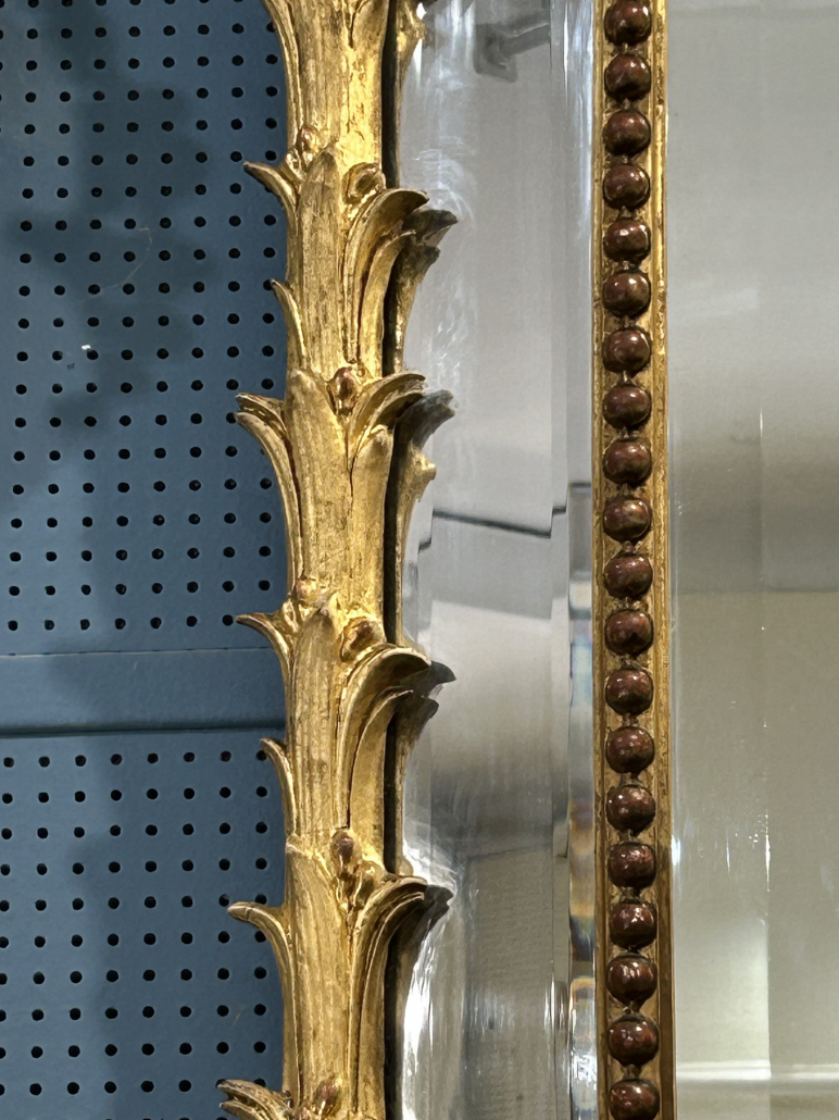 Miroir à parecloses ” facette ” d’époque Napoléon III de style Louis XVI (environ 1880) à double encadrement. En bois stuc et doré à la feuille d’or. Glace biseauté à l’argent ancienne.