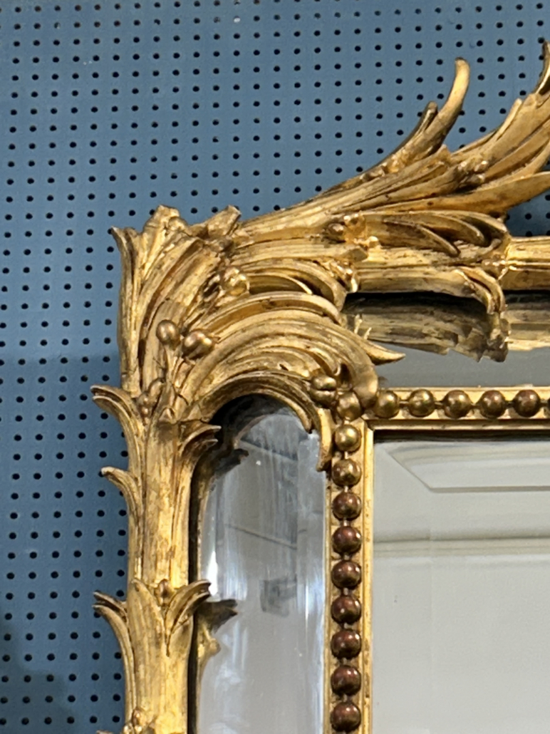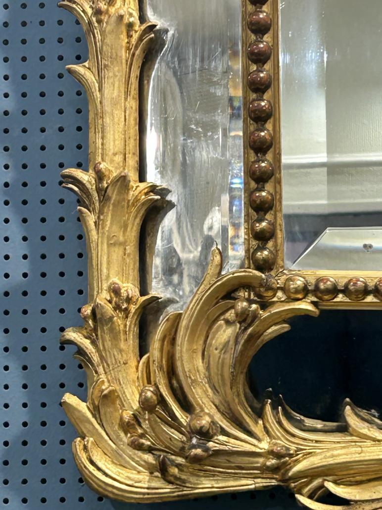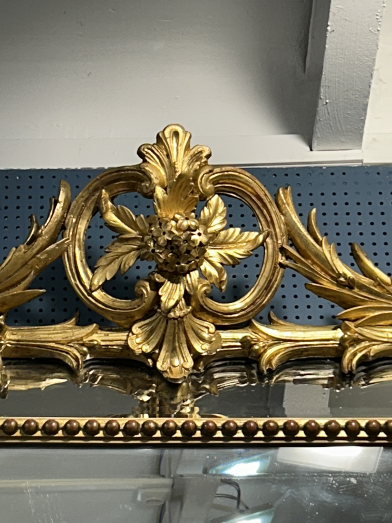Parecloses Trumeau époque Napoléon III, (double frame ) style Louis XV made of gilt wood and stuc (gold leaves). Antique beveled silver Glass.