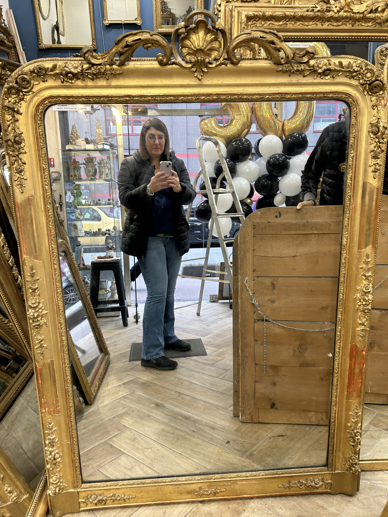 Mantle Trumeau époque Louis-Philippe made of gilt wood and stuc (gold leaves). Antique mercury Glass