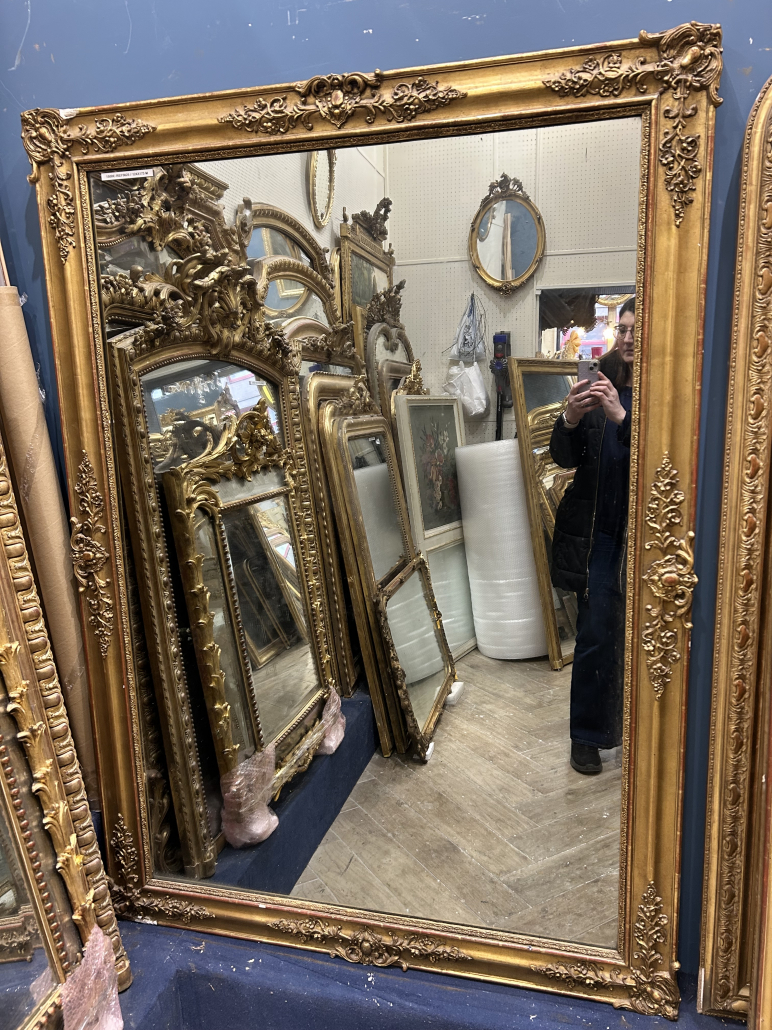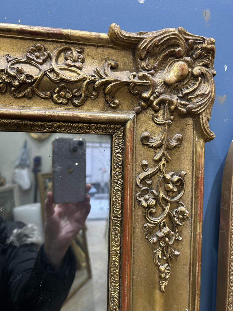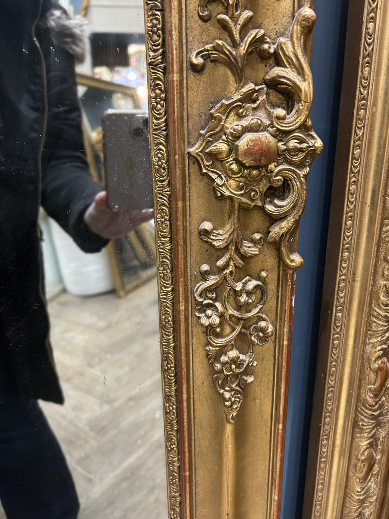 Mantle Trumeau époque Louis-Philippe made of gilt wood and stuc (gold leaves). Antique silver Glass