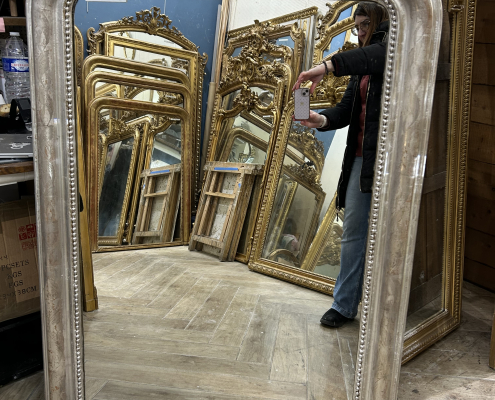 Mantle Trumeau époque Louis-Philippe made of silver wood and stuc (gold leaves). Antique silver Glass
