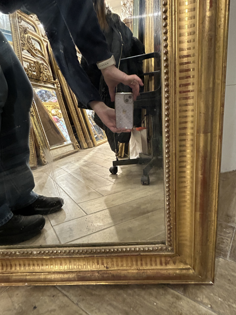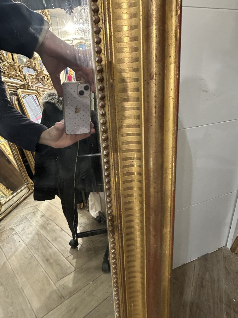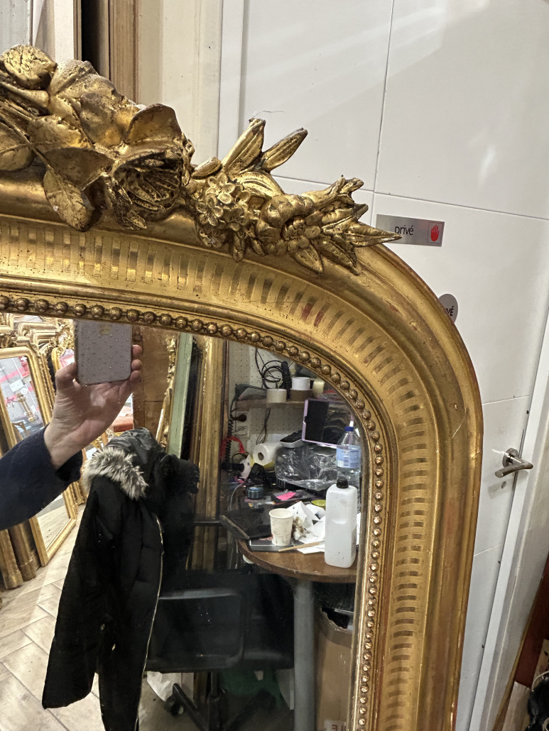 Mantle Trumeau époque Louis-Philippe made of gilt wood and stuc (gold leaves). Antique silver Glass