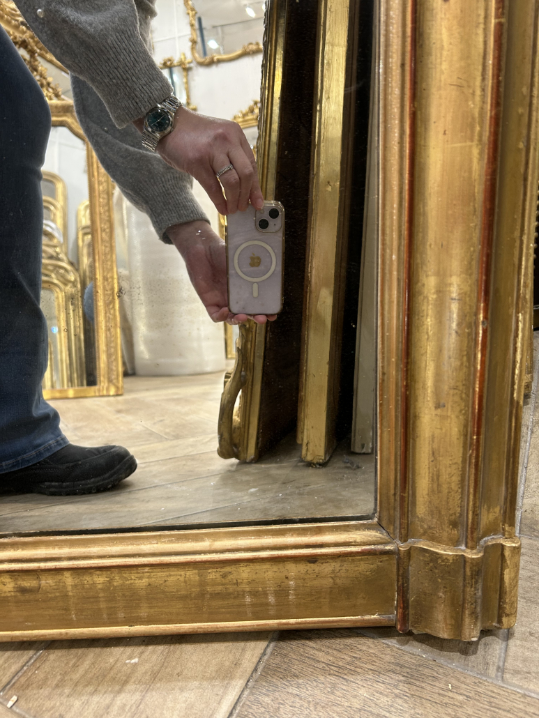 Mantle Trumeau époque Louis-Philippe made of gilt wood and stuc (gold leaves). Antique silver Glass