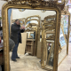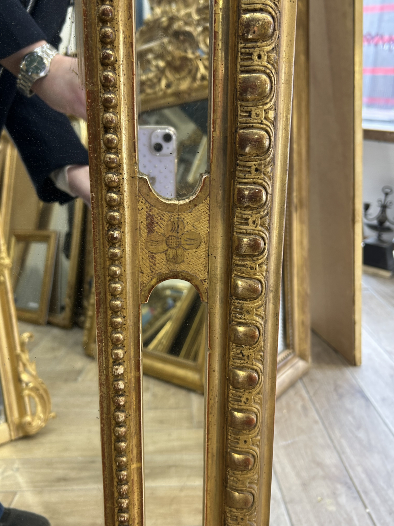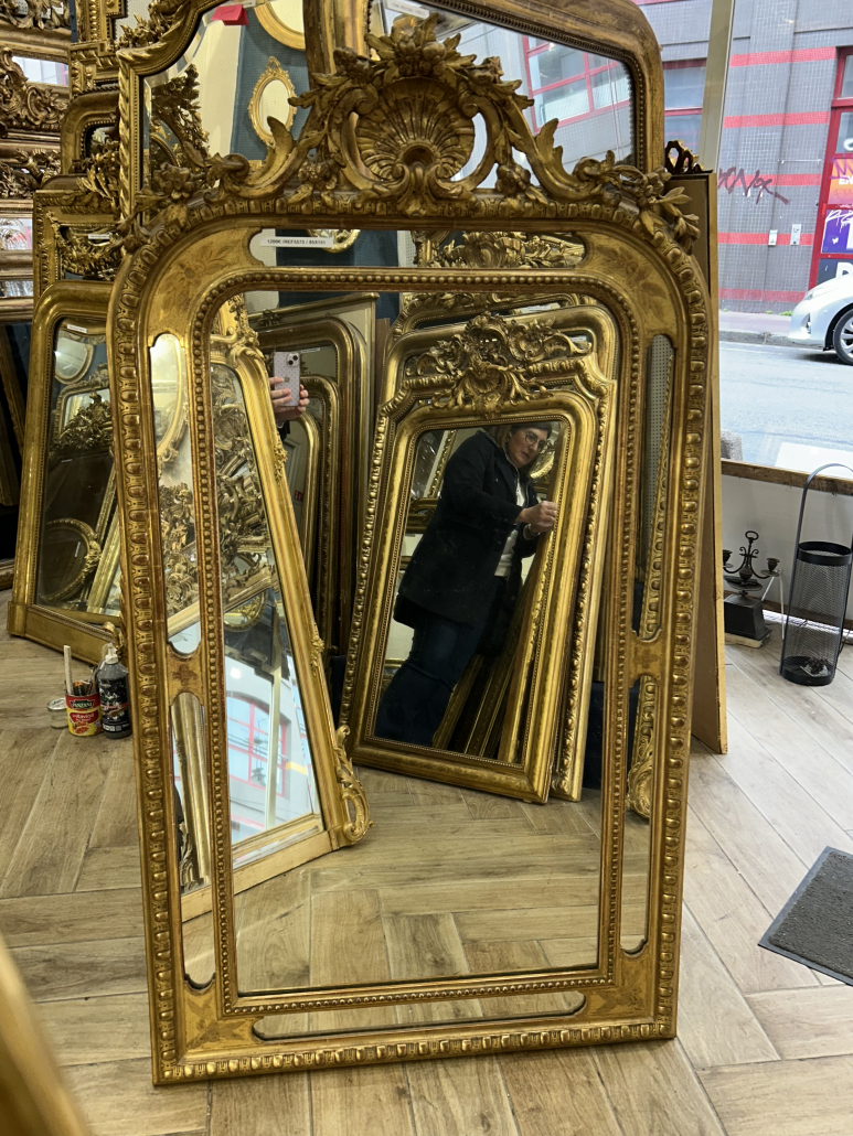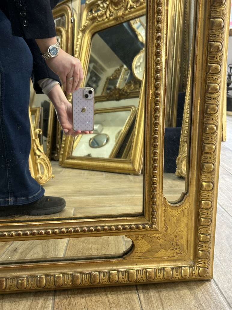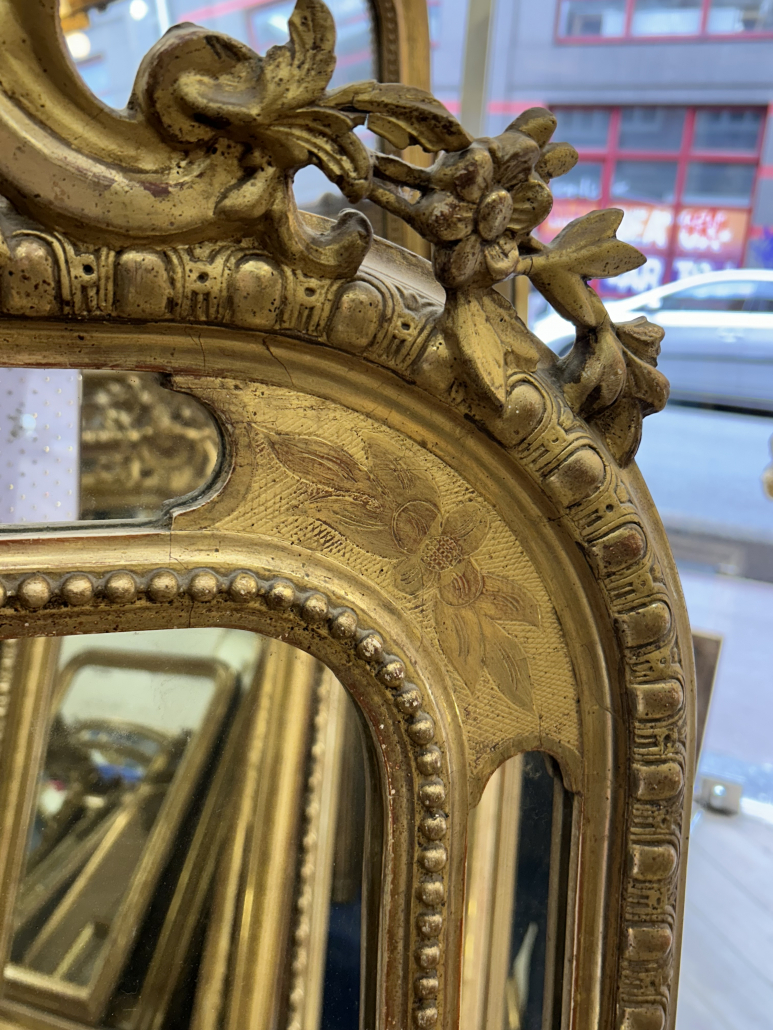 Miroir à parecloses ” facette ” d’époque Napoléon III de style Louis XV (environ 1880) à double encadrement. En bois stuc et doré à la feuille d’or. Glace à l’argent ancienne.