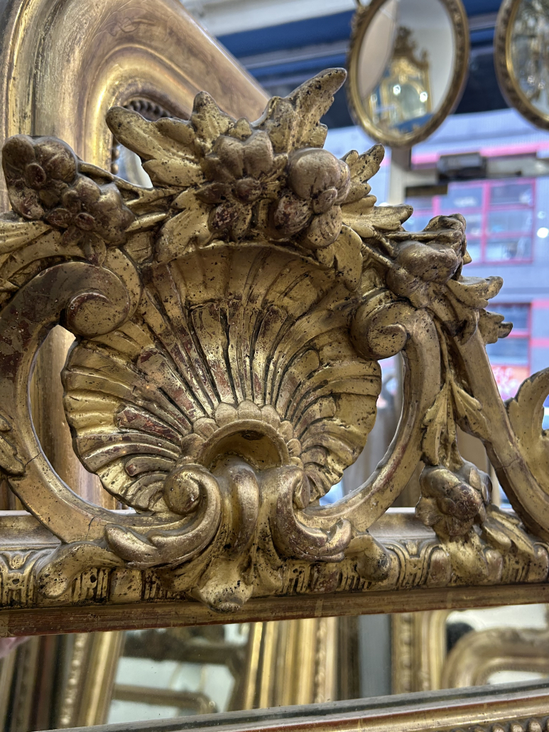 Parecloses Trumeau époque Napoléon III, (double frame ) style Louis XV made of gilt wood and stuc (gold leaves). Antique beveled silver Glass.