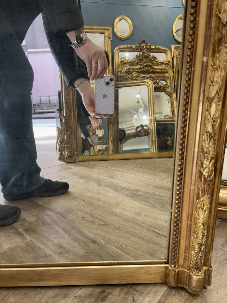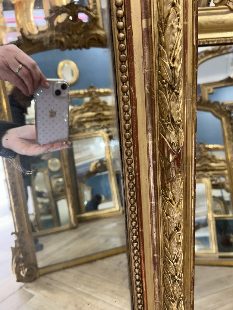 Mantle Trumeau époque Napoléon III, Louis XVI style made of gilt wood and stuc (gold leaves). Antique silver Glass.