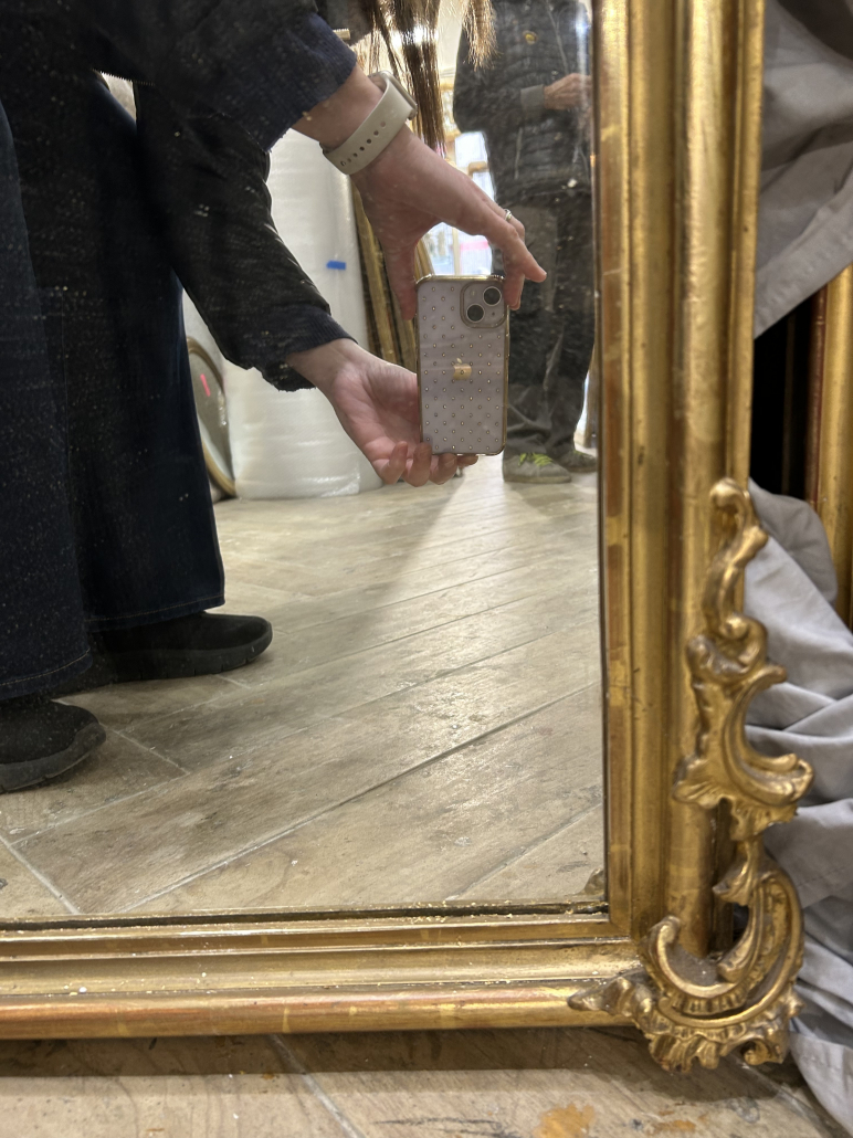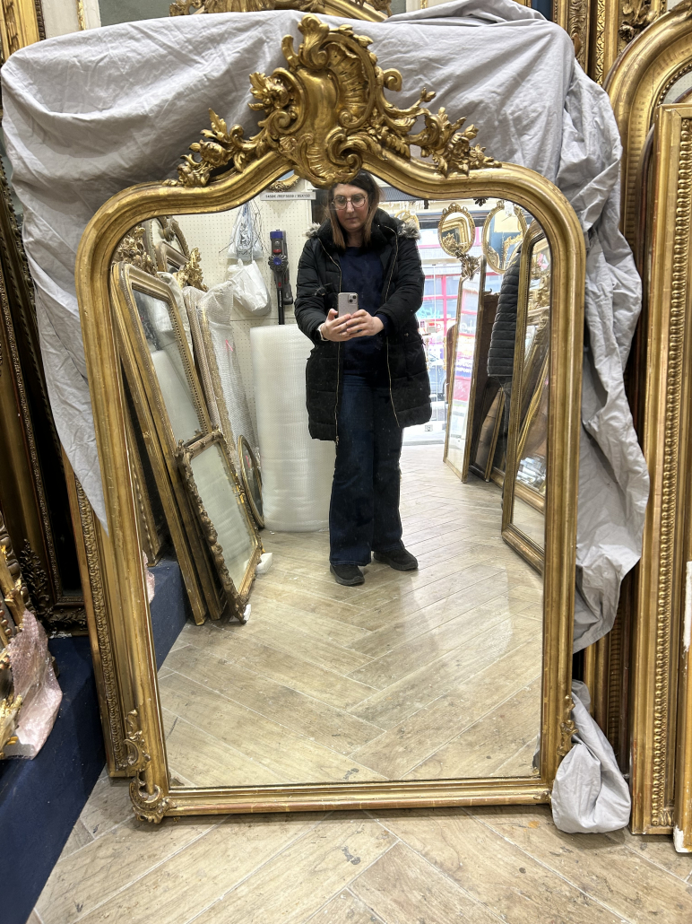 Mantle Trumeau époque Napoléon III, Louis XVI style made of gilt wood and stuc (gold leaves). Antique silver Glass.