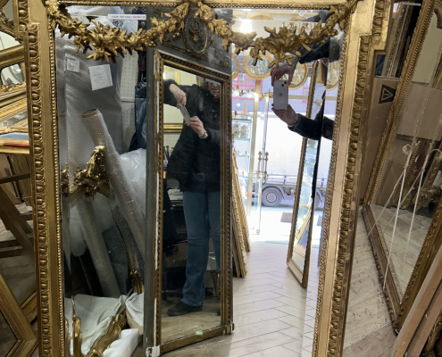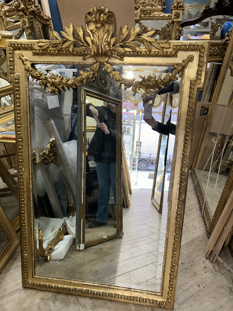 Mantle Trumeau époque Napoléon III, Louis XVI style made of gilt wood and stuc (gold leaves). Antique silver Glass.