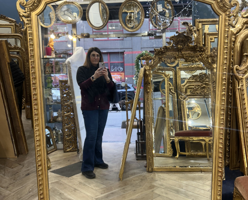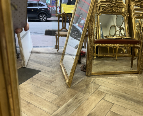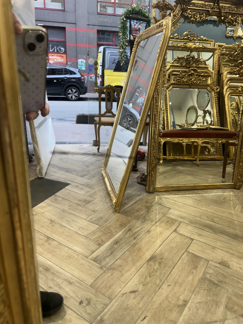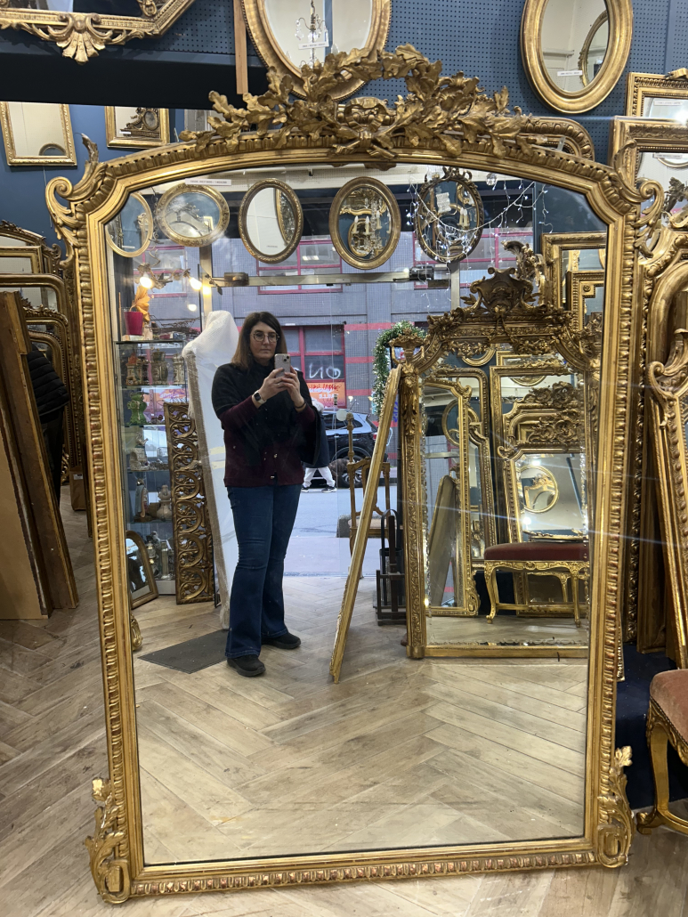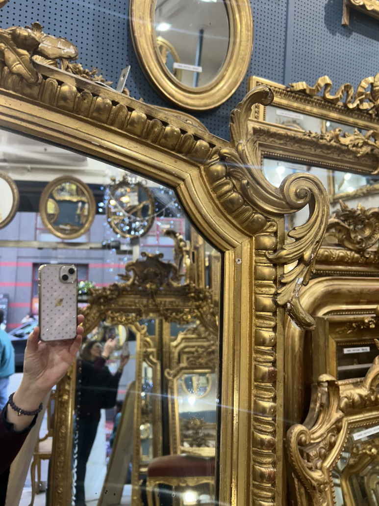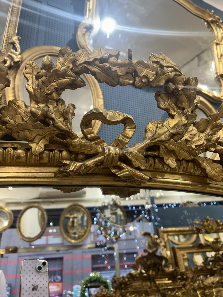 Mantle Trumeau époque Napoléon III, Louis XVI style made of gilt wood and stuc (gold leaves). Antique silver Glass.