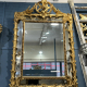 Miroir d’époque Napoléon III de style Louis XVI (environ 1880), en bois, stuc et feuille d’or, fronton Louis XVI. Glace à l’argent ancienne.