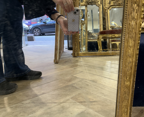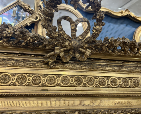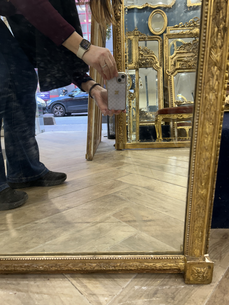 Mantle Trumeau époque Napoléon III, Louis XVI style made of gilt wood and stuc (gold leaves). Antique silver Glass.