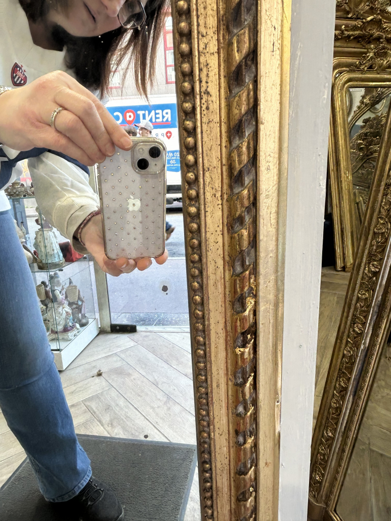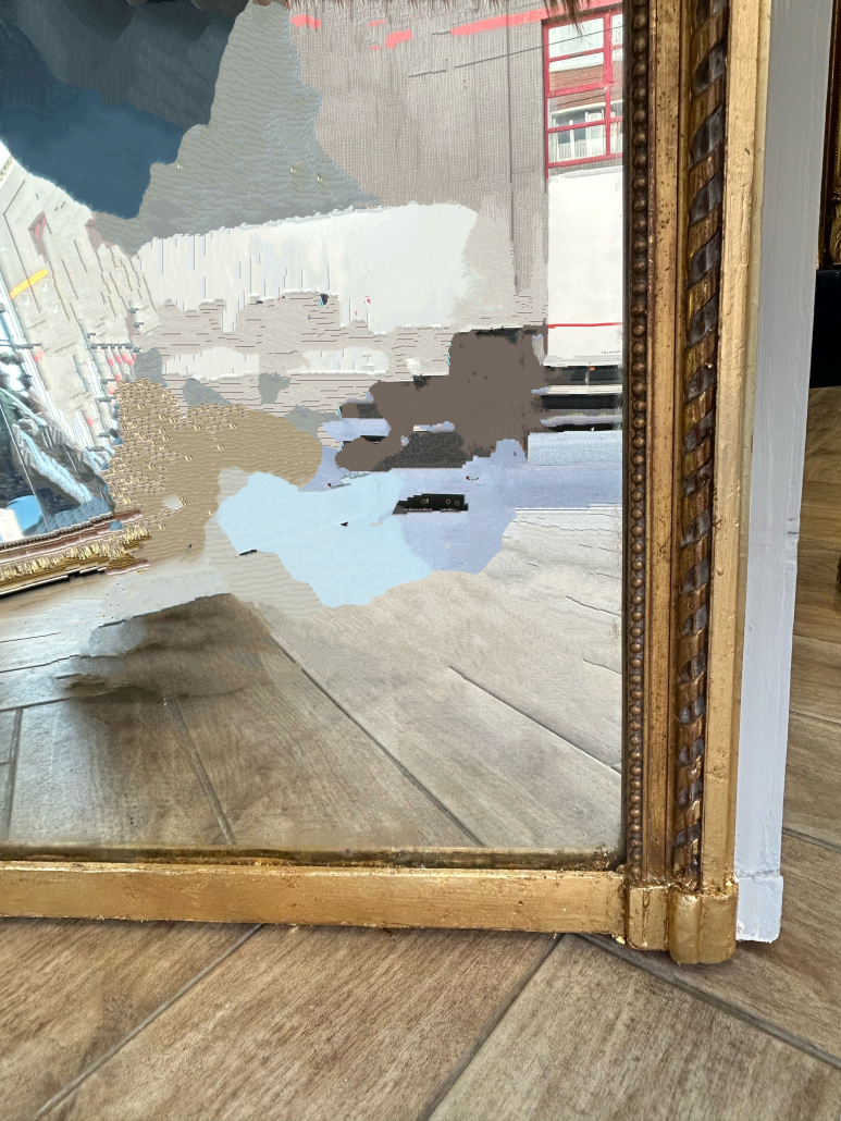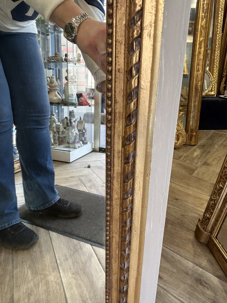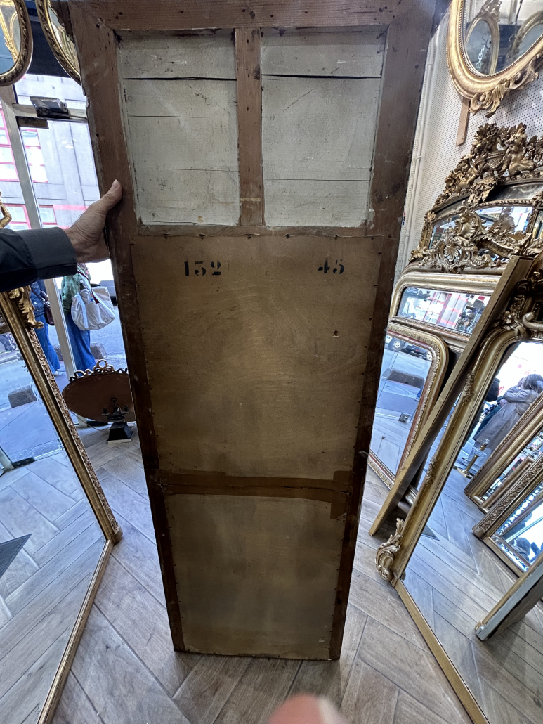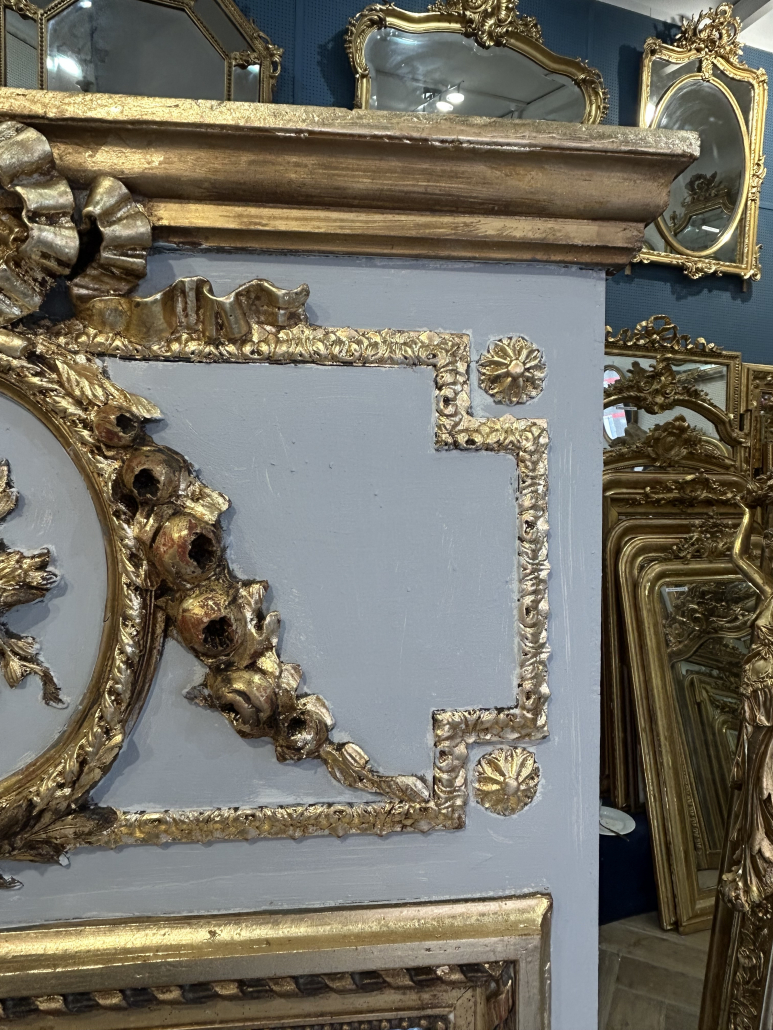 Mantle Trumeau époque Napoléon III, Louis XVI style made of gilt wood and stuc (gold leaves). Antique silver Glass.